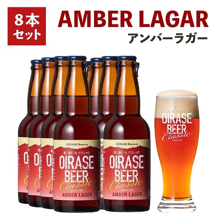 奥入瀬の源流水で仕込んだ「アンバーラガー」の8本セットです。